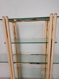 Libreria in stile classico con struttura realizzata in metallo color panna e dotata di 6 ripiani in cristallo. L'articolo è stato usato in ESPOSIZIONE all'interno del nostro showroom e presenta qualche piccolo segno dovuto a questa.
