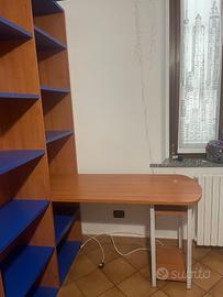 Vendo libreria blu e cigliegio con scrivania di soli 2 anni. Praticamente nuova. Libreria 190x230hx33 3 colonne 18 ripiani + cappello Scrivania 145x60xh80