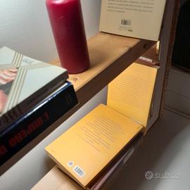 Libreria cornice totalmente in legno. Trasformazione artigianale predisposta per essere fissata al muro . Dimensioni cornice esterna in centimetri: 83 x altezza 73. Dimensione riquadro interno in centimetri 58 x 48 altezza. Mensole per libri 57 x 10. Due lampade di illuminazione a LED ricaricabili e dotate di interruttore on off e auto...che consente l'accensione solo al passaggio vicino delle mani. Le lampade sono calamitate e quindi rimovibili.