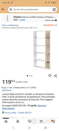 Altezza 182, larghezza 90, profondità 25 bianco rovere, usata pochissimi mesi, acquistata su Amazon a 130€ Trento centro no ztl
