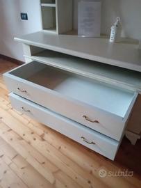, nessun difetto, realizzato da artigiano. Larghezza 130 , Profondità 59 Altezza 70 cassettoni Altezza 90 il pezzo sopra Altezza totale 160 artigianale in legno laccato bianco.