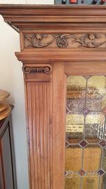 Libreria, credenza, vetrina, prestigiosa e antica ( inizio '900) tutta in puro noce nazionale massello con splendide venature e calde tonalità, interamente restaurata e trattata con gommalacca a tampone in oltre 10 mani da esperto ebanista . ottima per uno studio di prestigio o un un salone. Due grandi ante con vetri originali lavorati che creano un bellissimo effetto di luce e semitrasparenza, uno ha una leggera incrinatura come visibile in foto 5 . Intagliata con motivi floreali sulla cimasa, capitelli e lesene scanalate ai lati. All'interno ampi ripiani, liberamente posizionabili, per libri, ceramiche e oggetti da collezione, i ripiani non sono originali. Altre foto via Whatsapp. No tutto subito, ma possibile la consegna per Roma e zone limitrofe.