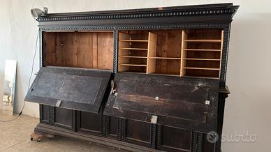 Mobile in legno massivo, stile rinascimentale , ideale per archiviare documenti e libri di diritto. Struttura robusta con porte ribaltabili in alto invece sotto ha gli sportelli con apertura a libro .