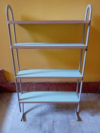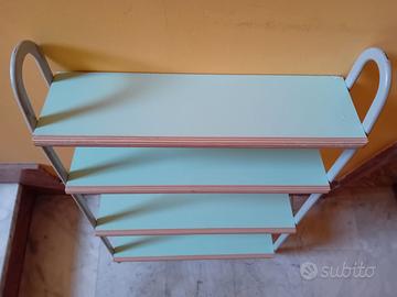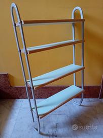 Vendo libreria da fissare alla parete, utilizzabile anche come semplice scaffale, con 4 mensole colore verde acqua in laminato, con struttura in metallo. Misure indicate nell'ultima foto pubblicata.