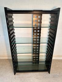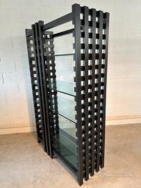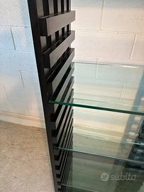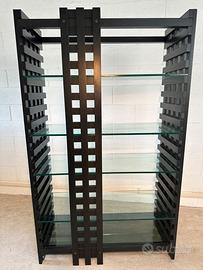 Libreria design realizzata in listelli di legno laccati Piani in cristallo spesso