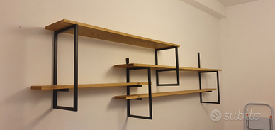 Varie realizzazioni in ferro (librerie, mensole ecc) (di diversi spessori). Quella nelle prime foto è composta da 11 pezzi di ferro che hanno subito un processo di arrugginimento e successivamente passato il trasparente opaco più due mensole in legno di recupero. Si possono realizzare più grandi o più piccole e con trattamenti del ferro o semplicemente verniciate del colore che si desidera. Prezzi modici a seconda della richiesta. Possibilità di montaggio.