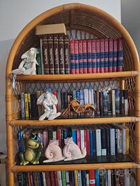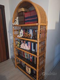 libreria di vimini con ripiani di cristallo color fumè. Dimensioni: