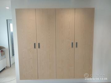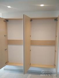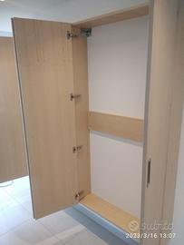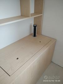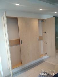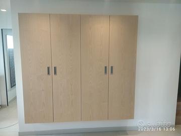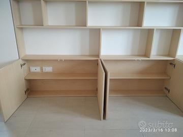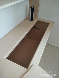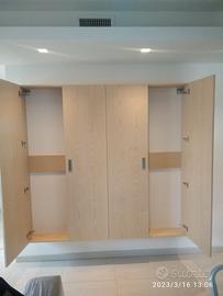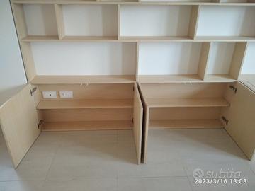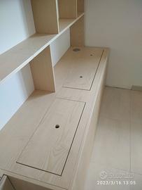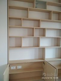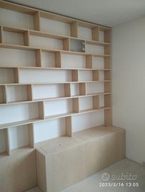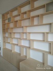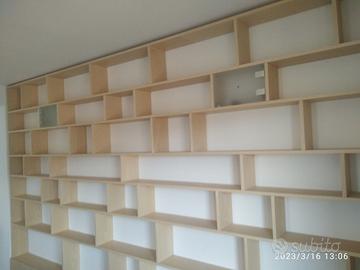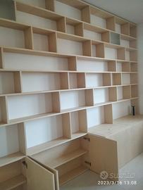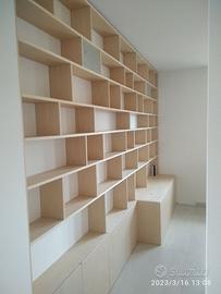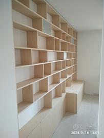 libreria (come da disegno del cliente) con misure lunghezza 398 cm altezza 270 profondità 22/44 cm. La libreria sarà costruita interamente in listellare di frassino spazzolato e completamente smontabile con fianchi e ripiani tutto a giorno spessore 2 cm fissi di varie lunghezze e altezze diverse in cui lo schienale lo troveremo solo nella parte SOTTO DOVE è CHIUSA DA ANTE mentre nella parte superiore esclusa. Disposto con 2 antine da circa 34 x 22 che si apriranno su cerniere regolabili direttamente sul vetro apertura push pull a pressione su vetro acidato (vedo non vedo) e nella parte sotto circa 212 di lunghezza troveremo 4 ante che si apriranno su cerniere da cucina e ripiano interno aggiustabile push pull a pressione. Vano da 180 cm + profondo da 44 cm chiuso con frontale anteriore fisso ma aperto nella parte superiore per poterlo sfruttare e foro per presa a colonna del cliente. Piedini livellatori per mettere a bolla il tutto giunzioni idonee per il montaggio del tutto. Finitura cerata neutra sul tutto. ARMADIO SOSPESO: costruito in listellare di frassino con misure lunghezza 190 prof. 25 max h 180 sospeso con relative attaccaglie posteriori per fissaggio a parete applicate sui fianchi (no schienale) ma completo di 4 ante battenti che si apriranno su maniglia ad incasso e cerniere regolabili x mettere a bolla il tutto ammortizzate in chiusura. Il tutto verrà cerato neutro. ESCLUSO attaccapanni appendini. Il prezzo si intende franco fabbrica con finitura maniglie iva non comprendente. costruito su commissione ed esigenze del cliente, non è disponibile a magazzino ma essendo i diretti produttori falegnami possiamo riprodurlo uguale o in base alle proprie esigenze. per domande o dubbi contattateci P.S. disponibili a dare suggerimenti o chiarimenti in merito, per noi conta dare vita al vostro sogno DIRETTAMENTE DAL PRODUTTORE ASTENERSI RIVENDITORI O COMMERCIANTI