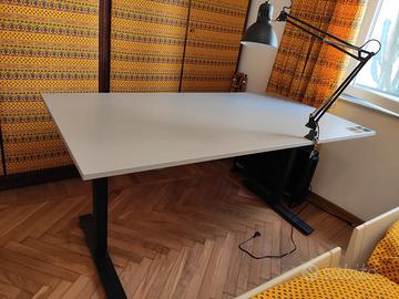 La scrivania di colore bianco può essere sollevata o abbassata in base alle esigenze.