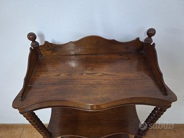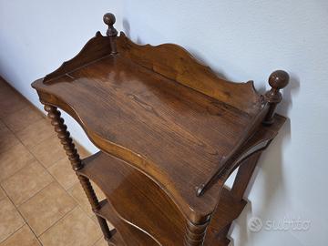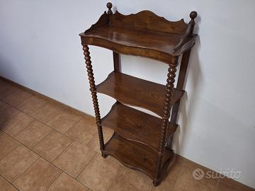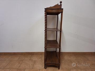 Antica e graziosa libreria étagére Luigi Filippo epoca ‘800 in legno massello, restaurata. Misura cm 56x31xh127. Particolare la sua linea mossa e le colonnine a rocchetto Bello il legno