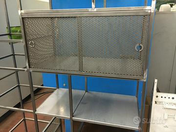 Libreria in stile minimal in ferro con ripiani di lamiera e pensili chiusi, per info, prezzi, misure e colori contattatemi