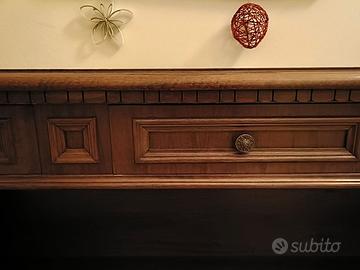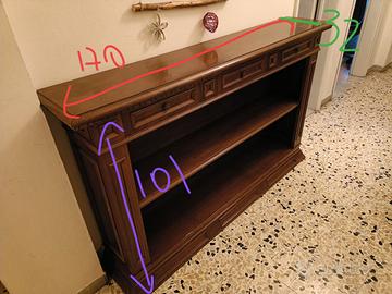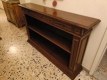 Libreria bassa/consolle atica con cassetti e ripiani perfetta per l'ingresso o corridoio.