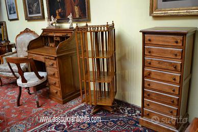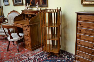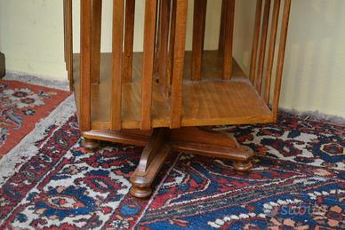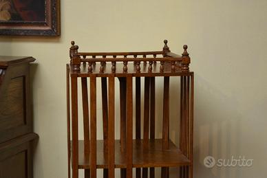 Libreria girevole a sezione quadrata in noce stile inglese, dotata di tre ripiani divisa da 4 compartimenti dove potrete inserire i vostri libri preferiti , supporti a fascia, perno di sostegno sorretto da piedini sagomati Dimensioni: Altezza 130 cm. Larghezza e Profondità 42 cm. (altezza ripiani interni 30 ).