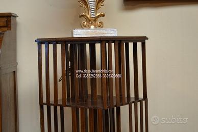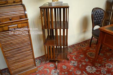 Libreria girevole a sezione quadrata in noce stile inglese, dotata di tre ripiani divisa da 12 compartimenti alti 30 cm.