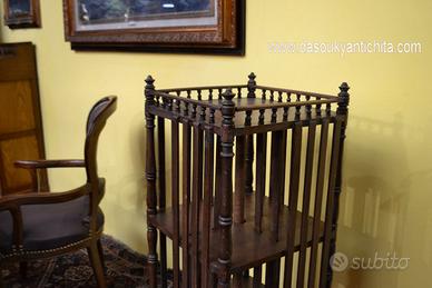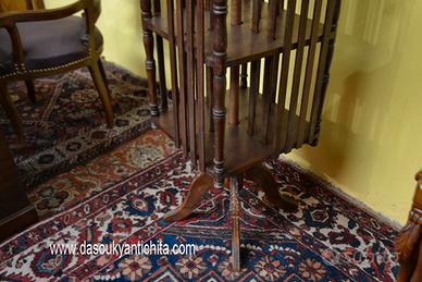 Libreria girevole a sezione quadrata in noce stile inglese, dotata di due ripiani divisa da 4 compartimenti dove potrete inserire i vostri libri preferiti , supporti a fascia, perno di sostegno sorretto da piedini sagomati