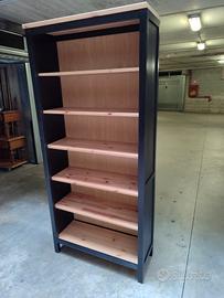 Libreria Ikea Hemnes in buono stato, legno di abete, dim. 89 x 34 x 199 cm altezza, colore marrone - nero, prezzo 130 euro, piano terra, zona corso Venezia Torino Nord, possibilità di trasporto.
