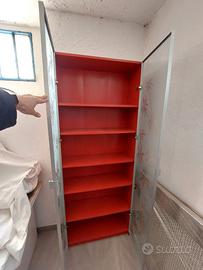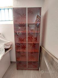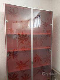 Libreria Ikea Billy Rossa con ante a fantasia floreale.