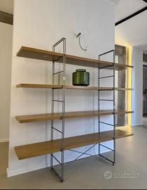Struttura metallica, mensole color legno.