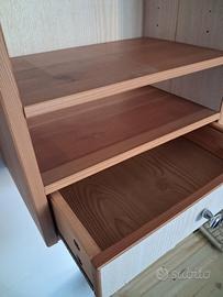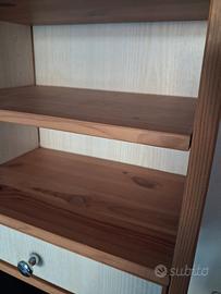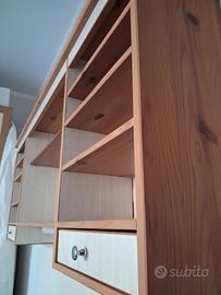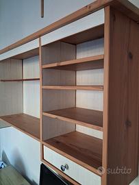 Libreria pensile e portaoggetti Hemnes della Ikea, tutta di legno di pino, con sette ripiani regolabili e due cassetti. La libreria misura cm.152Lx63Hx24P ed è in ottime condizioni. Non spedisco, consegno solo a mano o ad un Vostro corriere.