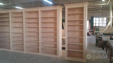 Libreria in PRONTA CONSEGNA abete massello con 1 vano a giorno con 7 ripiani aggiustabili con misura lunghezza 100 profondità 50 altezza 250 in cornice. La libreria è interamente in legno massello di abete completamente smontabile con 7 ripiani che verrà fatto una fresata alle estremità e inserito legno duro per impedire movimenti del legno in futuro, aggiustabili tramite una cremagliera interna, con schienale da 14 mm con fascia perimetrale per dare robustezza al tutto. Tutta la struttura e i ripiani saranno in abete massello da 20 mm. Il tutto sarà smontabile e facile da rimontare tramite ferramenta adatta barilotti e spine in legno. La libreria ha spallette con scanalatura nei lati con fianchi lisci, con cornici nella parte superiore. Competenza serietà e affidabilità ci contraddistinguono dal resto dei commercianti di mobili. Abbiamo la possibilità di costruirla A PIACERE in quanto siamo i diretti produttori, possibilità di farla ad 1 blocco,2/3/4/5 anche angolo e per negozi. con sovra prezzo possiamo laccarla e lucidarla a piacere del cliente franco fabbrica iva non comprendente. Per qualsiasi informazione non esitate a contattarci grazie DIRETTAMENTE DAL PRODUTTORE (IN PRONTA CONSEGNA) ASTENERSI RIVENDITORI E COMMERCIANTI