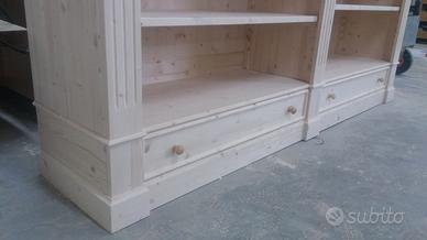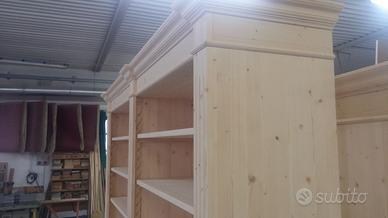 Libreria in abete bianco completamente smontabile 2 cassetti 2 vani a giorno e ripiani totalmente regolabili con misure lunghezza 193 profondità 41 altezza 227. Costruita interamente in abete massello (non laminato, truciolare, composti in genere) da noi stessi in quanto siamo produttori di mobili e arredamenti in genere. anteriormente ci saranno 2 vani tutti uguali. La libreria sarà costruita interamente in abete massello e completamente smontabile con fianchi spessore 2 cm e ripiani spessore 2 cm restante sarà fissato con ferramenta adatta. Saranno eseguiti 2 vani di 90 cm in lunghezza in modo che frontalmente risultino tutti uguali. In ogni modulo ci saranno 5 ripiani (ne sono stati aggiunti 2 in quanto la libreria è alta 20 cm in più) aggiustabili tramite scaletta interna con spessore 2 cm con relativa fresata con inserito legno duro nelle 2 estremità in modo da mantenerlo dritto nel tempo, con schienale spessore 14mm con fascia alle estremità del pannello avvitato posteriormente. La libreria avrà gambette livellatrici dietro lo zoccolo in modo da mettere a bolla il tutto. completo di scanalature sul frontale delle spallette. sotto troveremo posto per la sistemazione dei 2 cassetti costruiti sempre in massello di abete e scorreranno su guide in legno uniti a coda di rondine, come richiesto dal cliente con aggiunta di 2 cassetti interni nascosti. il prezzo si intende franco fabbrica al grezzo non lucidato non comprendente iva con 10 ripiani complessivi, con maggiorazione possiamo fornirla lucidata laccata o cerarla. Possibilità di costruirla A PIACERE in quanto siamo i diretti produttori. libreria già costruita e venduta su commissione non teniamo magazzino ma essendo i diretti produttori possiamo costruirla in base alle proprie esigenze e fattezze. Per qualsiasi informazione non esitate a contattarci DIRETTAMENTE DAL PRODUTTORE. per dubbi e chiarimenti contattateci. ASTENERSI RIVENDITORI E COMMERCIANTI