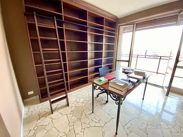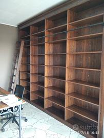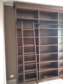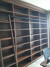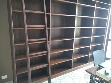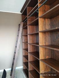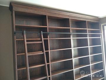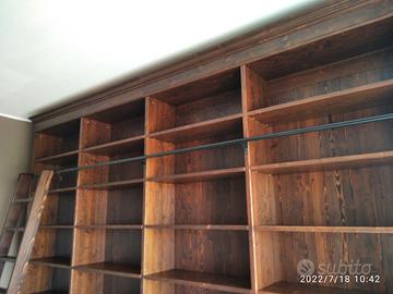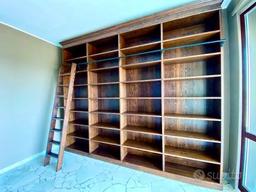 libreria costruita in abete massello con lunghezza totale (in cornice) 350 altezza 290 cm profondità 40 cm utile interno 30 cm. la libreria è costruita interamente in abete massello spazzolato con fianchi verticali da 3 cm disposta in 4 vani parte da circa 86 cm, internamente con 7 ripiani per ogni modulo (28) in massello di abete spessore 2,4 cm aggiustabili a mezzo bussola avvitata nel fianco con relativo supporto in ferro e femmina inserita nel ripiano. Schienale posteriore da 14 mm con fascia alle estremità per dare robustezza al tutto inserito nell'apposita fresata posteriore, sotto zoccolo dritto h 10 cm con piedini livellatori posti dietro nascosti per mettere a bolla il tutto, parte superiore cappello h 15 cm con relative cornicette modanate, completo di tubolare standard in ferro con supporto fissato direttamente al fianco della libreria (verrà fatta una lamella in ferro per la scala per la sicurezza). scala costruita in massello di abete spessore circa 3,5 con relativi scalini. Finitura tinta noce medio. Il prezzo si intende franco fabbrica completo di finitura iva esente, costruito su commissione ed esigenze del cliente, non è disponibile a magazzino ma essendo i diretti produttori falegnami possiamo riprodurlo uguale o in base alle proprie esigenze. per domande o dubbi contattateci P.S. disponibili a dare suggerimenti o chiarimenti in merito, per noi conta dare vita al vostro sogno DIRETTAMENTE DAL PRODUTTORE ASTENERSI RIVENDITORI O COMMERCIANTI