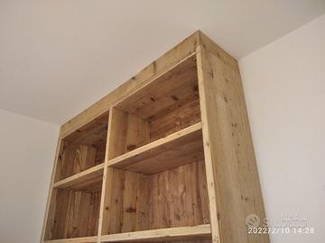 libreria costruita a 3 strati (interno multistrato e rivestita ambo i lati con cartelle di massello di abete vecchio recuperato da parancole da muratore assi di solai antichi, levigate carteggiare restaurate e pressate in modo che resti dritto e bilanciato nel tempo) con misure lunghezza 150 prof.35 h 296 predisposta in 2 vani in cui la parte sotto con zoccolo h 10 cm come pure parte superiore 6 ripiani aggiustabili con ferramenta idonea e schiena posteriore in ABETE MASSELLO nuovo DA 14 MM con fascia alle estremità in modo che non si incurvi nel tempo completo di fascia laterale, finitura cerata e tinta noce scura per lo schienale. mobile già realizzato su commissione di conseguenza non teniamo magazzino ma possiamo riprodurlo uguale o modificando in base alle proprie esigenze iva non comprendente. per domande o dubbi contattateci P.S. disponibili a dare suggerimenti o chiarimenti in merito, per noi conta dare vita al vostro sogno DIRETTAMENTE DAL PRODUTTORE. ASTENERSI RIVENDITORI E COMMERCIANTI
