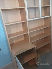 Come da foto, vendo libreria in legno chiaro, con anta bianca in basso e ante a vetri in alto. Le misure sono circa 150 cm x 35 cm (circa 60 cm nella parte sporgente in basso) x 260 cm circa di altezza. € 140 Rispondo solo tramite Subito.it. Grazie.