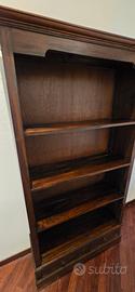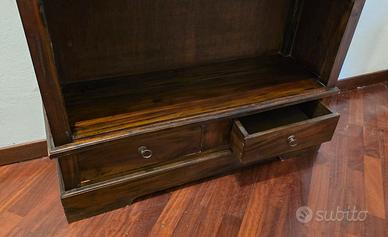 Libreria in legno massello di colore scuro in vendita. Design classico con più ripiani e due cassetti nella parte inferiore. Molto solida e ben tenuta, ideale per libri, decorazioni o ufficio.