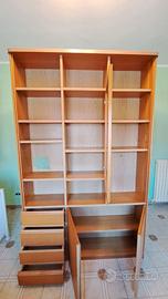 Per inutilizzo vendo libreria di legno in buono stato molto capiente, composta da cassettiera, sportelli in legno, uno in vetro e varie mensole. Presenta un foro nel pannello di compensato facilmente oscurabile, rimovibile o sostituibile.