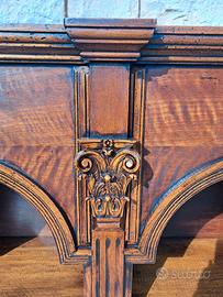 Vendo Libreria con 2 archi in legno Massello, Credenza con vani a giorno e 6 ripiani. Elegante libreria in stile classico di una bella tonalità di legno di colore noce chiaro si abbina perfettamente a tutti gli stili, dal classico al moderno. Mobile di grande qualità riccamente intagliato e decorato con motivi floreali. Credenza di forma lineare in ottime condizioni perché completamente restaurata. Il mobile è molto spazioso, con dei ripiani grandi per riporre qualsiasi oggetto o grandi faldoni per uno Studio Professionale. La libreria puo essere collocato in qualsiasi punto della casa dal soggiorno all'ingresso o in uno studio. L. 140 P. 43 H. 153 € 520,00 SCONTATA € 450,00.