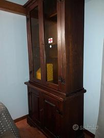 mobile in legno massiccio con vetrina nella parte alta e mobile ripostiglio nella parte inferiore, adatta per casalinghi, abbigliamento, libri etc