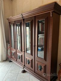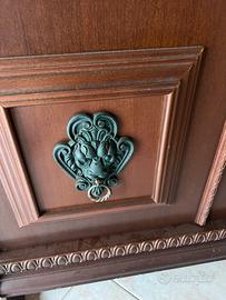 Vendo libreria/credenza in legno massello in stile classico, con dettagli intagliati e rifiniture decorative.