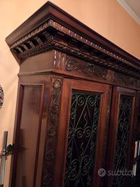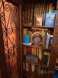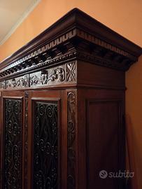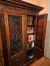 Vendo Libreria a tre Ante con ognuna a quattro ripiani,di legno in Noce Antica con intarsi in ferro battuto. Le dimensioni sono Altezza 205 larghezza 170 spessore 45 In ottime condizioni.