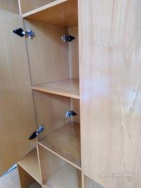 Libreria porta oggetti in massello di quercia laccato di noto designer Silvio Russo ( balsioj per Fama , vede depliant in foto). Può essere messo al muro come in mezzo alla stanza per creare due ambienti. Ha due ante centrali apribili dai due lati. Smontabile. Ingombro 218 x 218 x 38 cm Tenuto benissimo. Non presente graffi . Costruzione fortissima. Va smontato sul posto e portato via dall' acquirente.