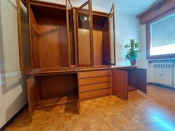 libreria in noce composta da due pezzi - lunghezza 3 metri, altezza 1,45 metro, profondo 0,70 cm, la libreria ha circa trent'anni ma è ben tenuta smontaggio e trasposto a vs carico