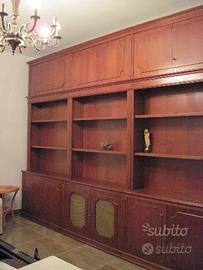 Vendo libreria appena restaurata, in noce nazionale. Misure mt 4,80 (larghezza) x 0,40 (spessore della parte bassa) x 2,80 (altezza). Di fattura completamente artigianale, risalente agli anni '60. Molto capiente e robusta, di grande effetto dal vivo, ideale per uno studio in stile classico.