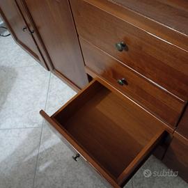 Libreria in rovere, larghezza 2,75m; profondità 0,40; altezza 2,32. quattro armadietti con sportelli, otto cassetti