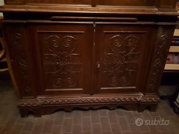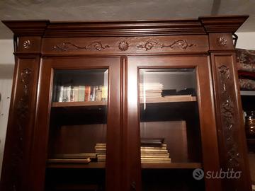 Libreria in stile rinascimentale in perfette condizioni, parte alta vetrata e parte bassa ante cieche. larghezza 122 cm profondità 48 cm altezza 228 cm