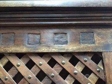 libreria in teak composta con 5 ripiani e intrecciatura a vista, le dimensioni sono: 2 metri altezza, 1 metro larghezza e 40 cm spessore, non spedisco perché ingombrante e molto pesante essendo in teak, comprato da un importatore più di 10 anni fa e mai usata, si presenta come si vede nelle foto per avere altre informazioni contattatemi solo tramite il sito per poi procedere ad un appuntamento in sede, prezzo non trattabile solo massima serietà