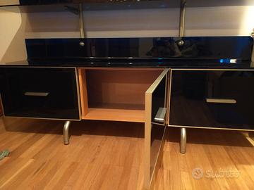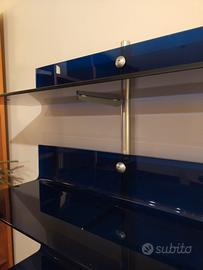 bellissima libreria/mobile soggiorno in vetro blu e acciaio satinato larghezza 180 x profondità 45 altezza staffa al muro 210 mentre altezza ultima mensola 187cm