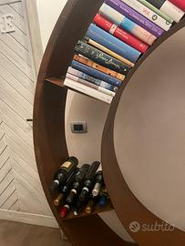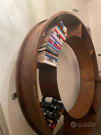 Libreria industrial ma anche cantinetta per vino, costruita da abili artigiani in acciaio corten. Diametro libreria 1,9 mt