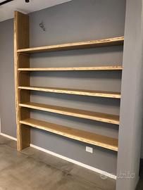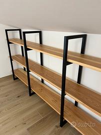 Su richiesta si realizzano librerie stile "industriale" con mensole in legno massello (rovere, olmo, larice, ecc..) e struttura in ferro verniciato nero o bianco.
