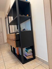 Libreria Jolly Devina Nais con due cassetti, colori neo e legno nordico.