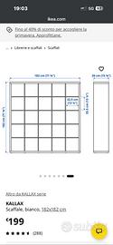 Vendo libreria Kallax , colore effetto rovere misure 182x182 . La libreria si presente in buonissime condizini eccetto delle macchie su un paio di ripiani . Smontaggio e trasporto a carico dell acquirente . Prezzo trattabile .