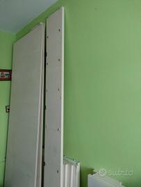 Libreria composta da angolo chiuso, scaffali, vetrinetta, mobiletto chiuso, cassetti... presenti alcuni fori passacavi.