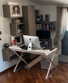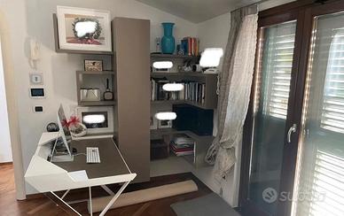 Libreria Lago con pensile con ripieni e porta in vetro opaco. Esente da imperfezioni. Colore tortora opaco