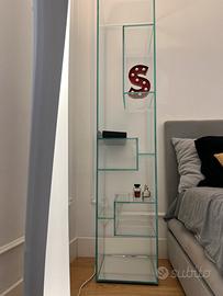 Libreria Liber Tonelli Design con struttura in vetro e base a specchio h 2 metri