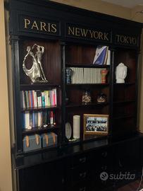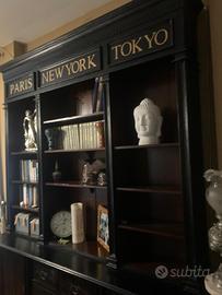 Vendo elegante libreria firmata Maisons du Monde, modello ispirato allo stile urban chic con scritte decorative dorate PARIS – NEW YORK – TOKYO nella parte superiore.