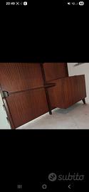 Mobile a giorno/libreria autoportante realizzata in legno di teak e costituita da mensole poste ad altezze differenti e vano con anta a ribalta. Presenta il marchio della produzione.